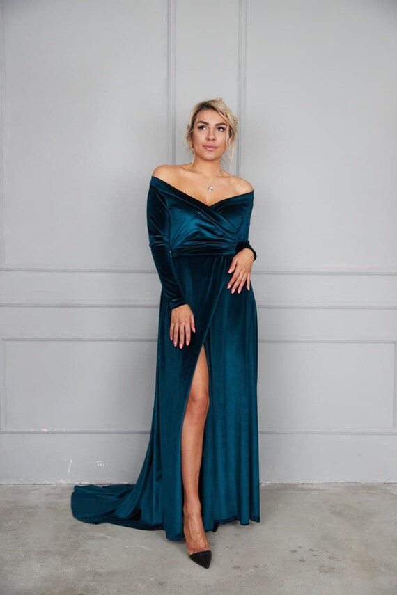 Long Sleeve Leg Split Wrap Drape Classy Bridesmaids Dresses Etsy Uk