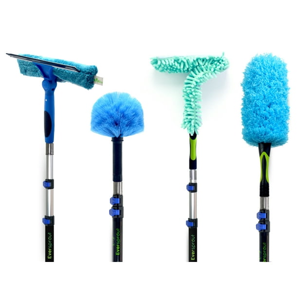 Eversprout 7 To 20 Foot 4 Pack Duster Squeegee Kit With Extension Pole 25 Foot Reach Swivel Squeegee Hand Packaged Cobweb Duster Microfiber Feather Duster Ceiling Fan Duster Telescopic Pole Walmart Com