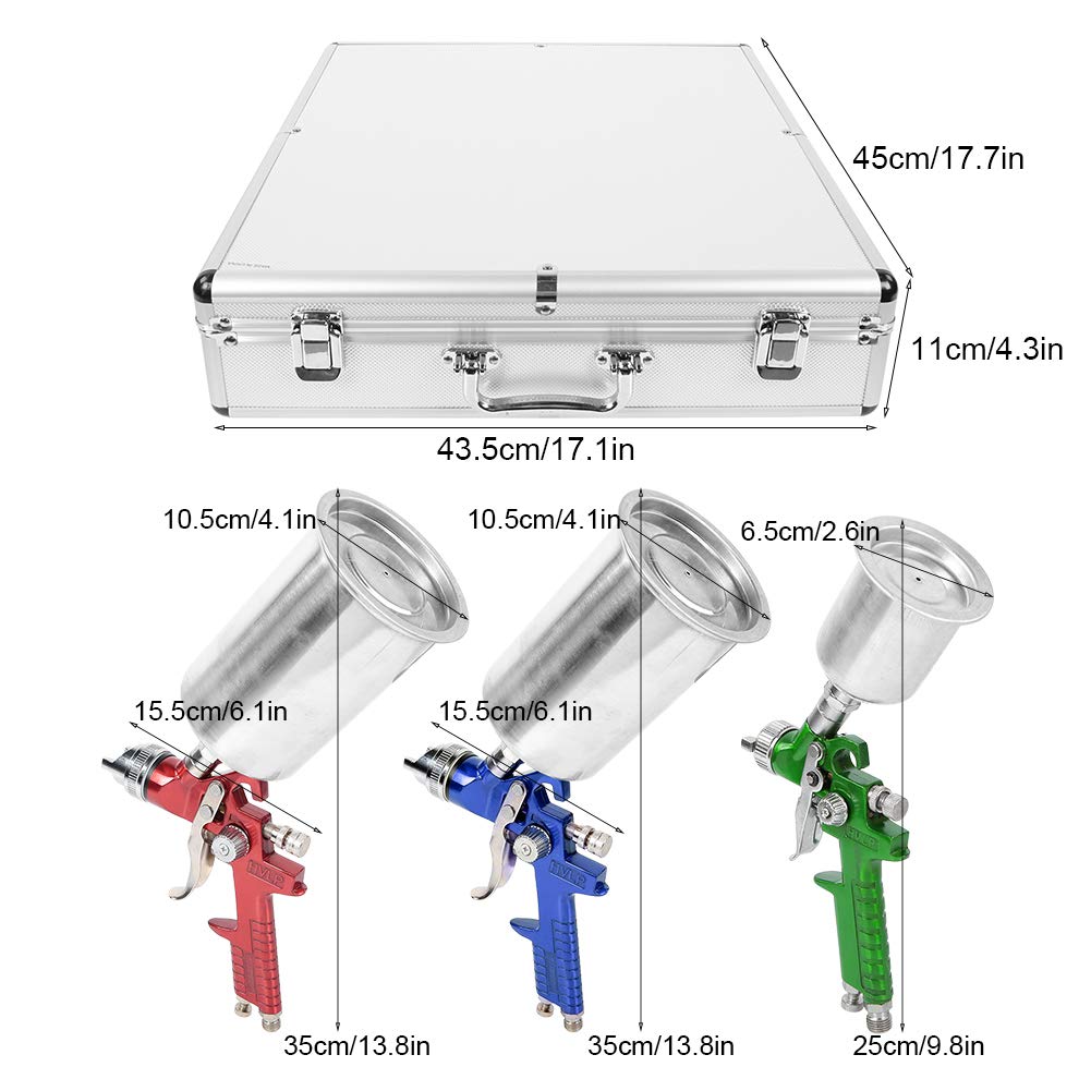 Carbole Hvlp Paint Spray Gun With 3 Nozzles 1 4 1 7 2 5 Mm And 1000 Cc Ml Aluminium Cup Paint Spray Systems With An Air Pressure Regulator Paint Spray Gun Can Be Used For Cars Furniture